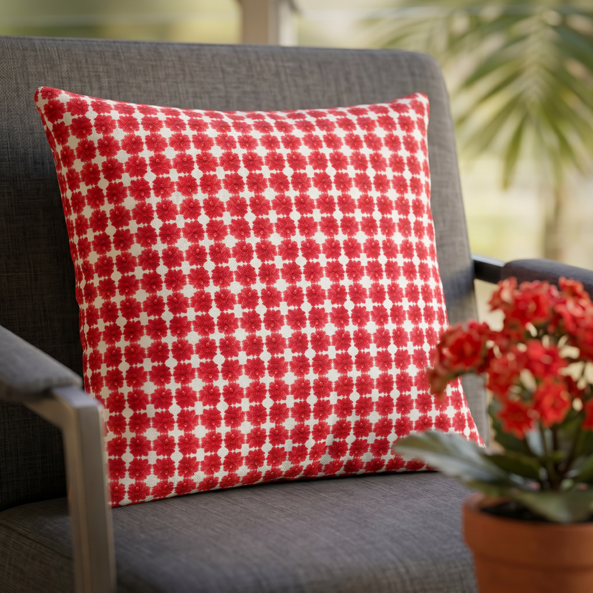 Coussin Déco Kalanchoé Graphique - Motif Floral Réunionnais